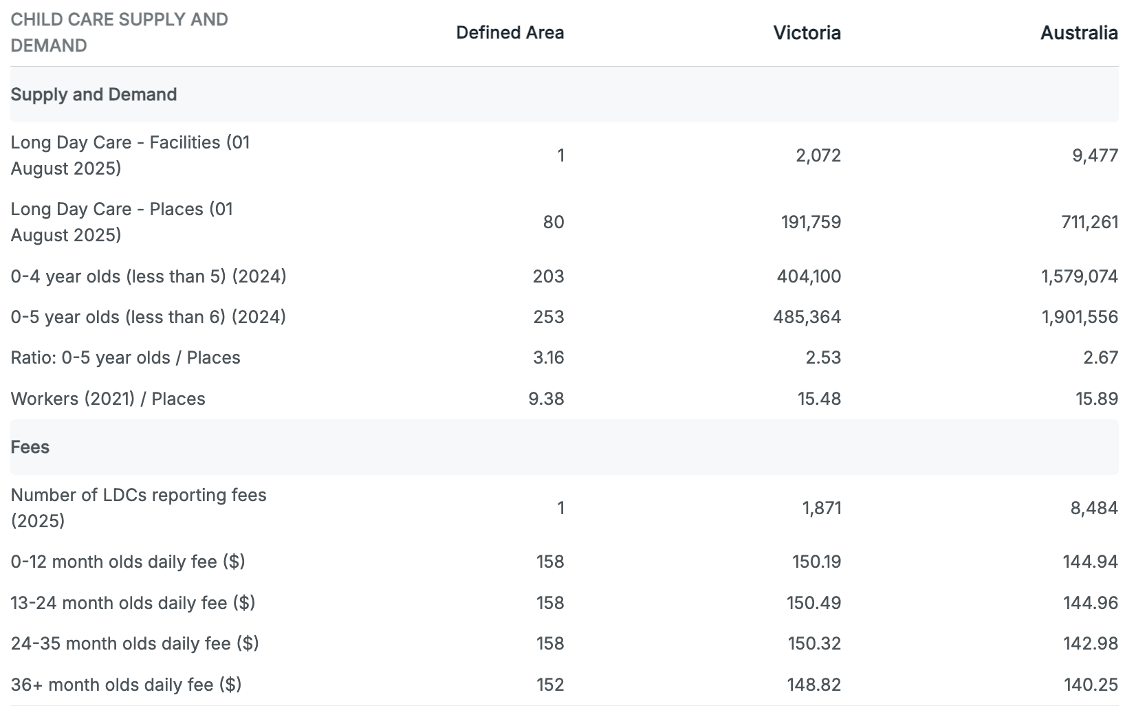 Ratio: 4.05 children per place (vs NSW ~2.8 balance)