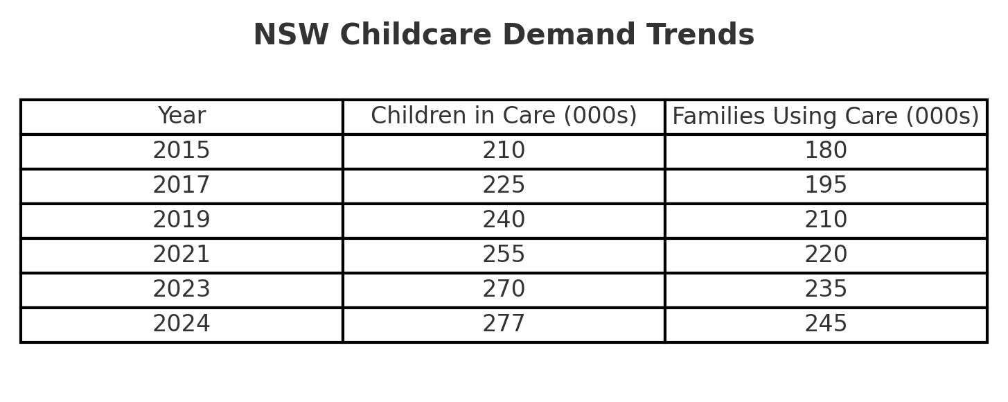 For Childcare Centre developers, operators, investors, financiers, and advisors